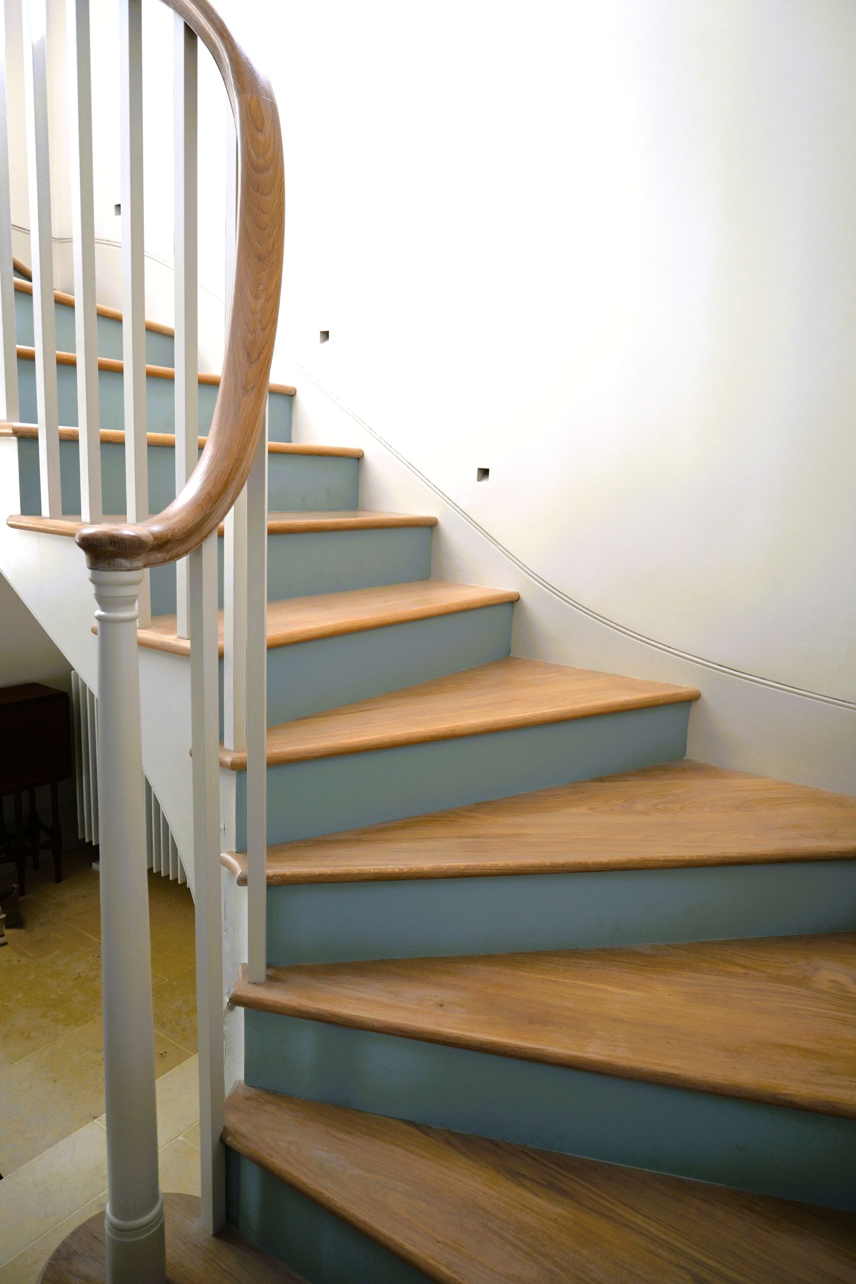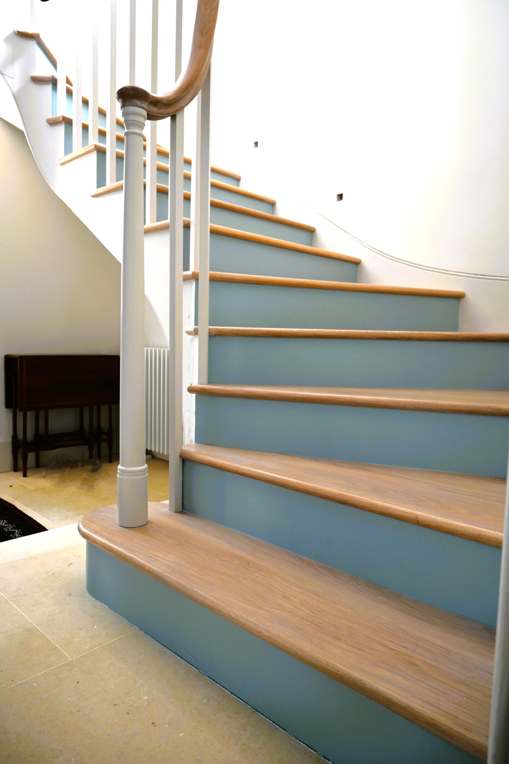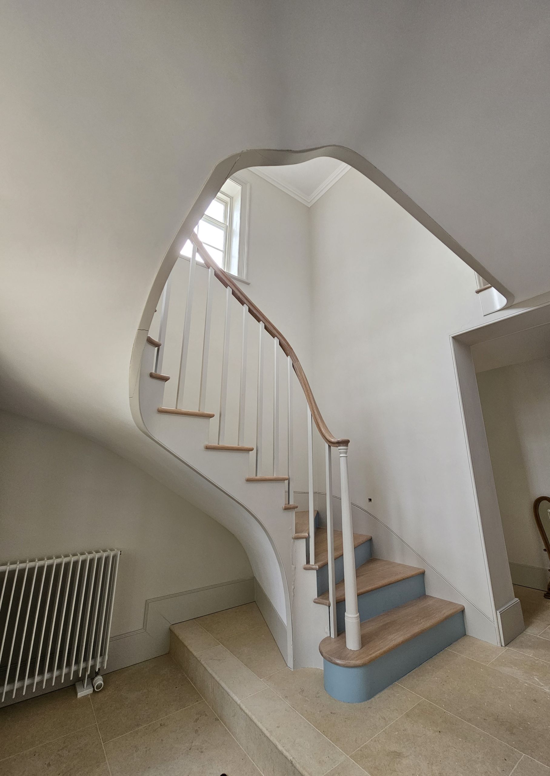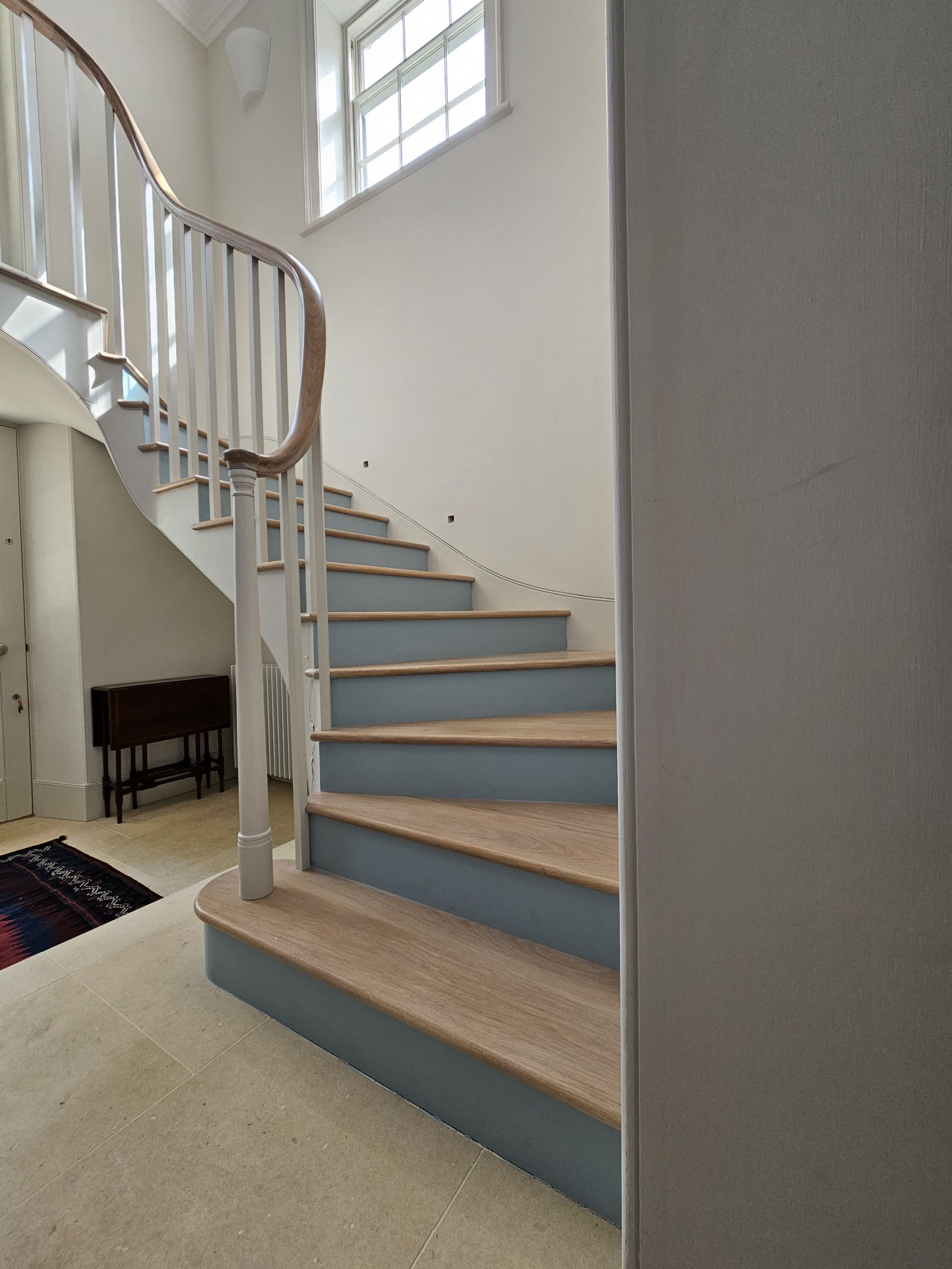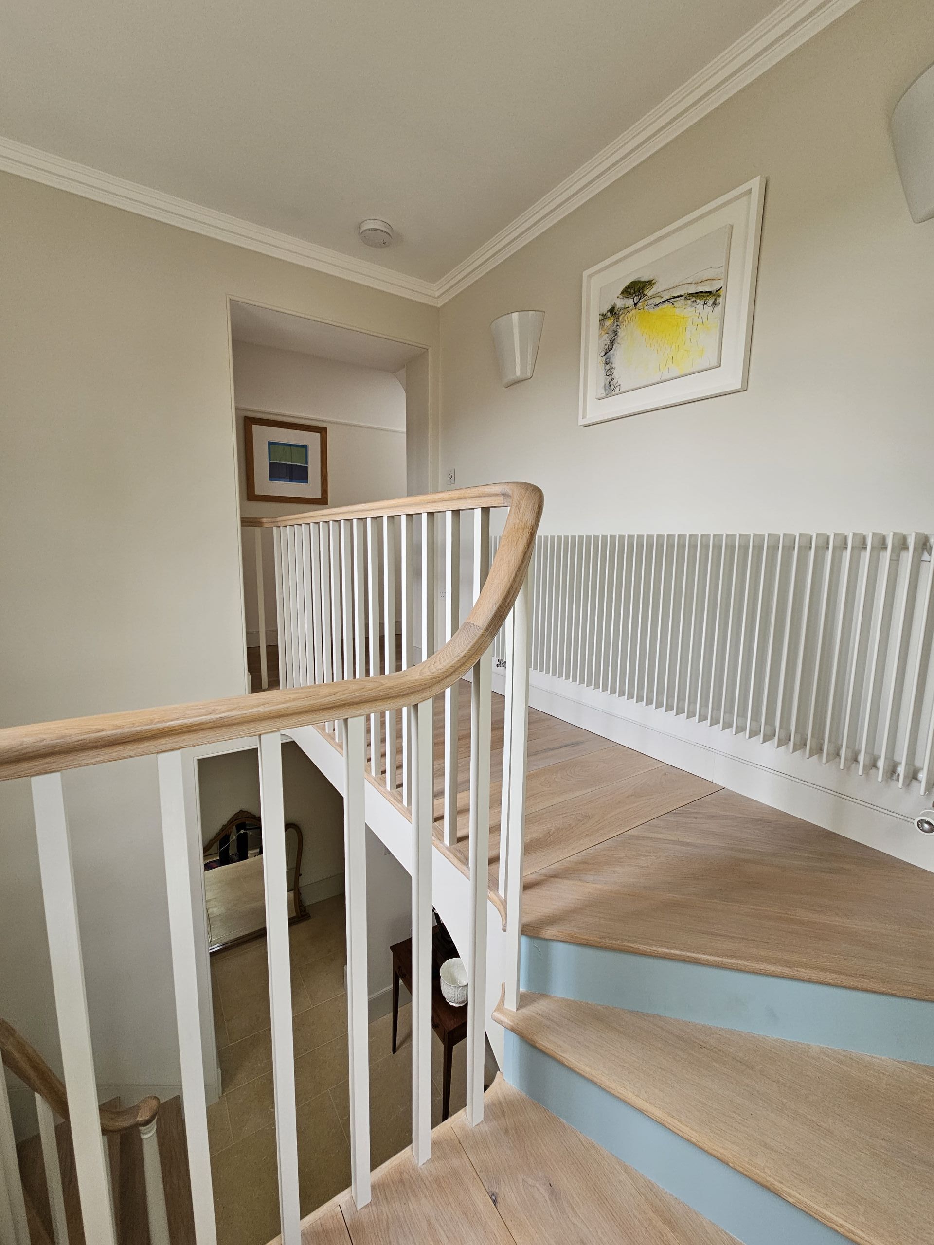The pale blue risers and white balustrades give a little contrast, without taking away the light and airy feel that’s been achieved.